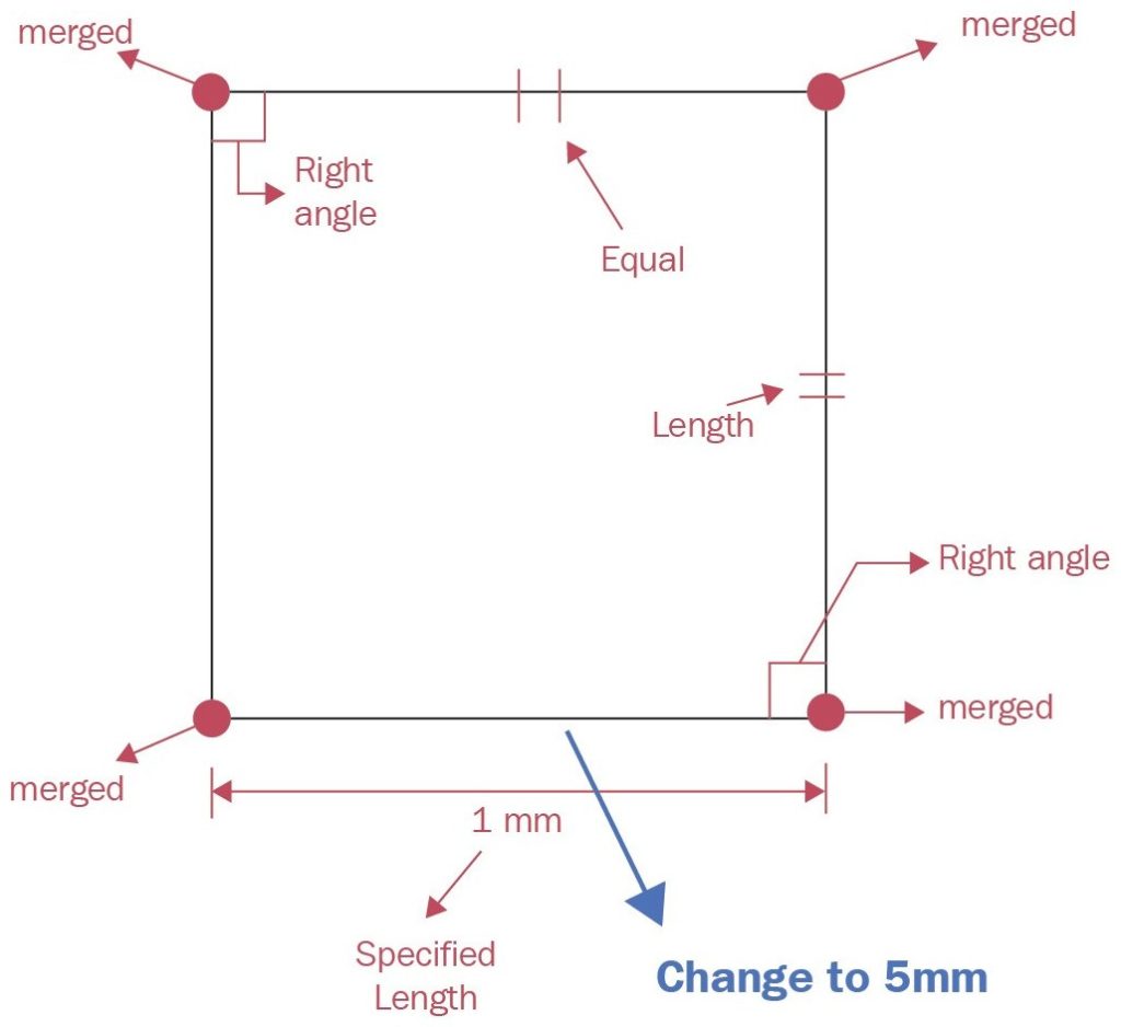 With that single step, the cube is fully modified, with all the sides changing to 5 mm in length. Again, this is because our cube parameters must have equal perpendicular and parallel sides. Given that we have defined our intended parameters/design settings for the software, all of those will be retained, resulting in the whole cube model being updated with one single adjustment.
