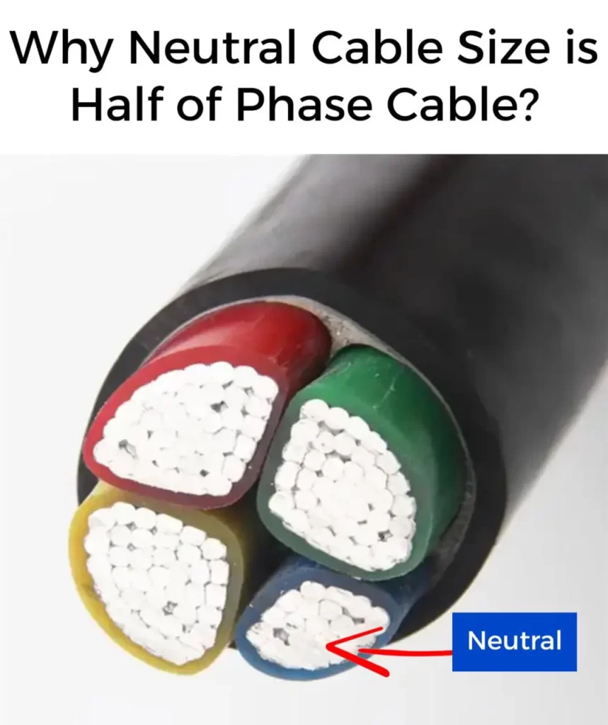 The neutral wire is half the size of the phase wire because it carries only the imbalance current between phase A and phase B.